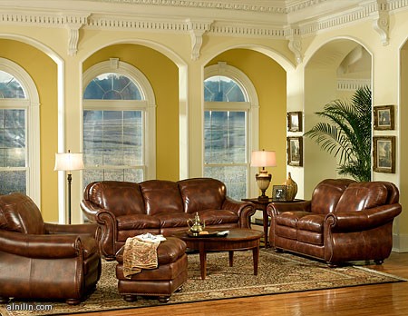 طقم جلوس بالجلد واللون البني الغامق وروعه القعده وتناسقه