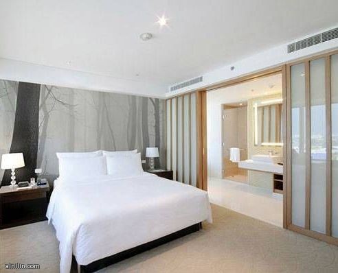 غرفة نوم قمة الروعه بالون السماوي والابض الراقي مع الاضاءه الطبيعيه